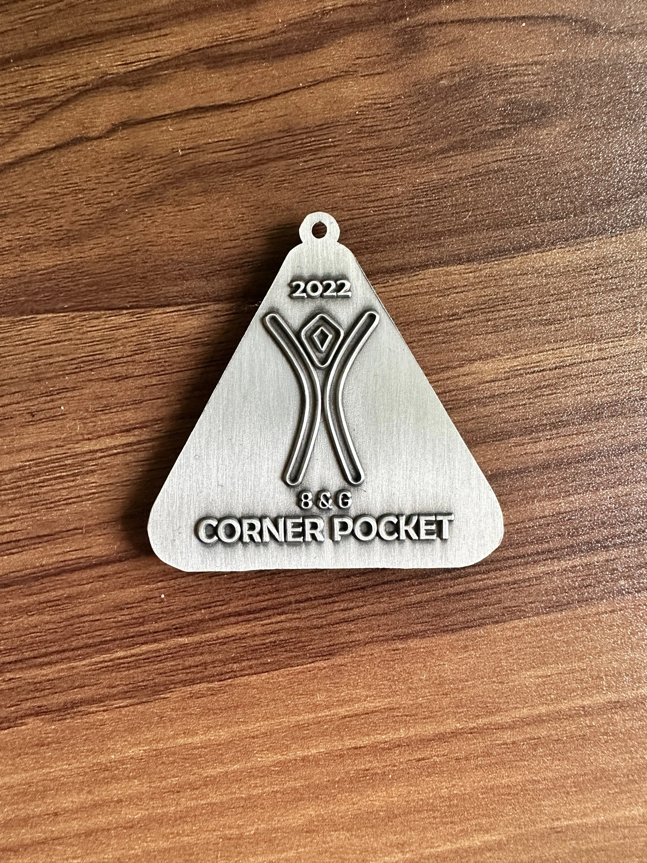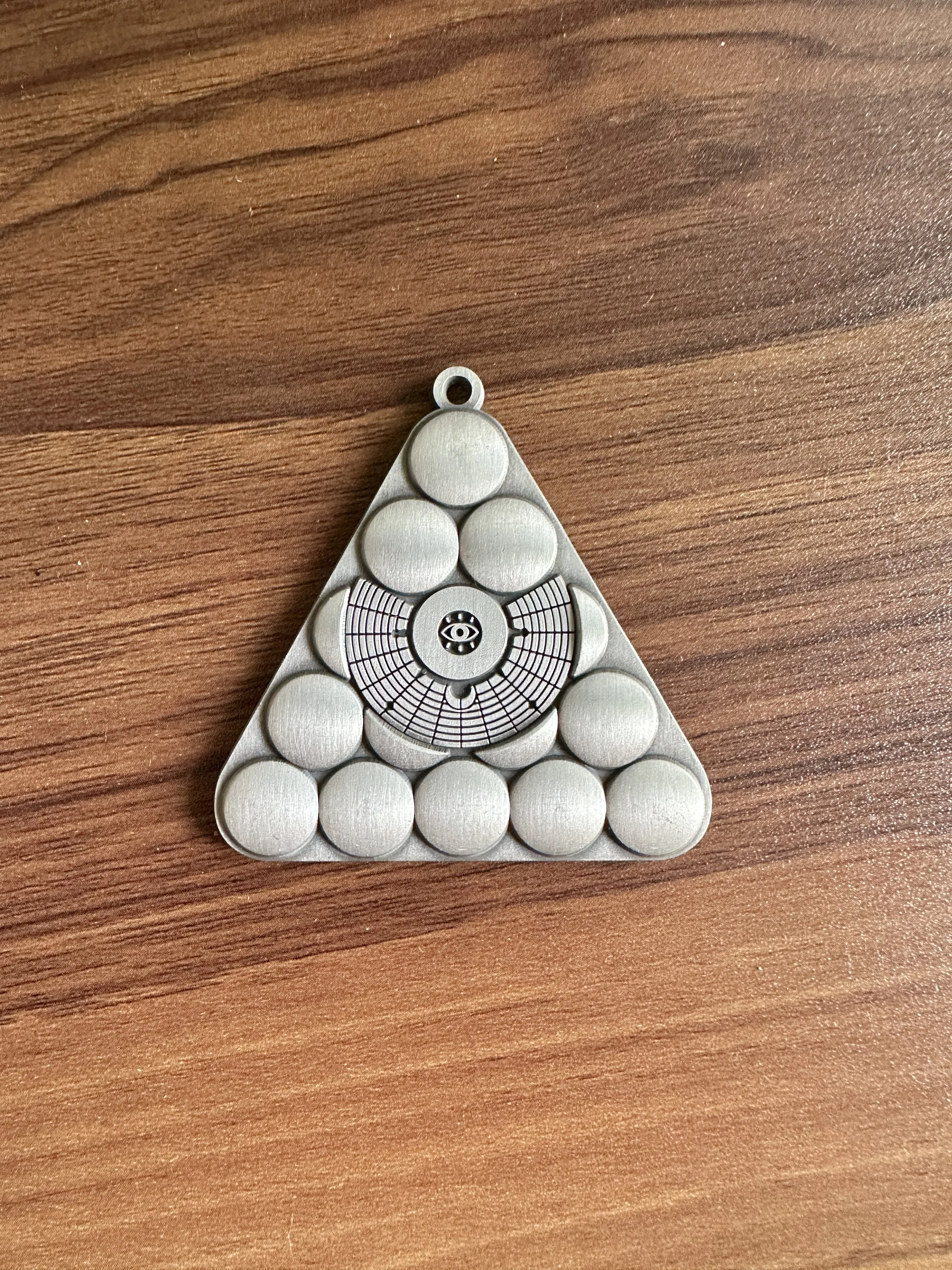 Corner Pocket Pendant created for camp Corner Pocket that hosts billiards tournaments at Burning Man.